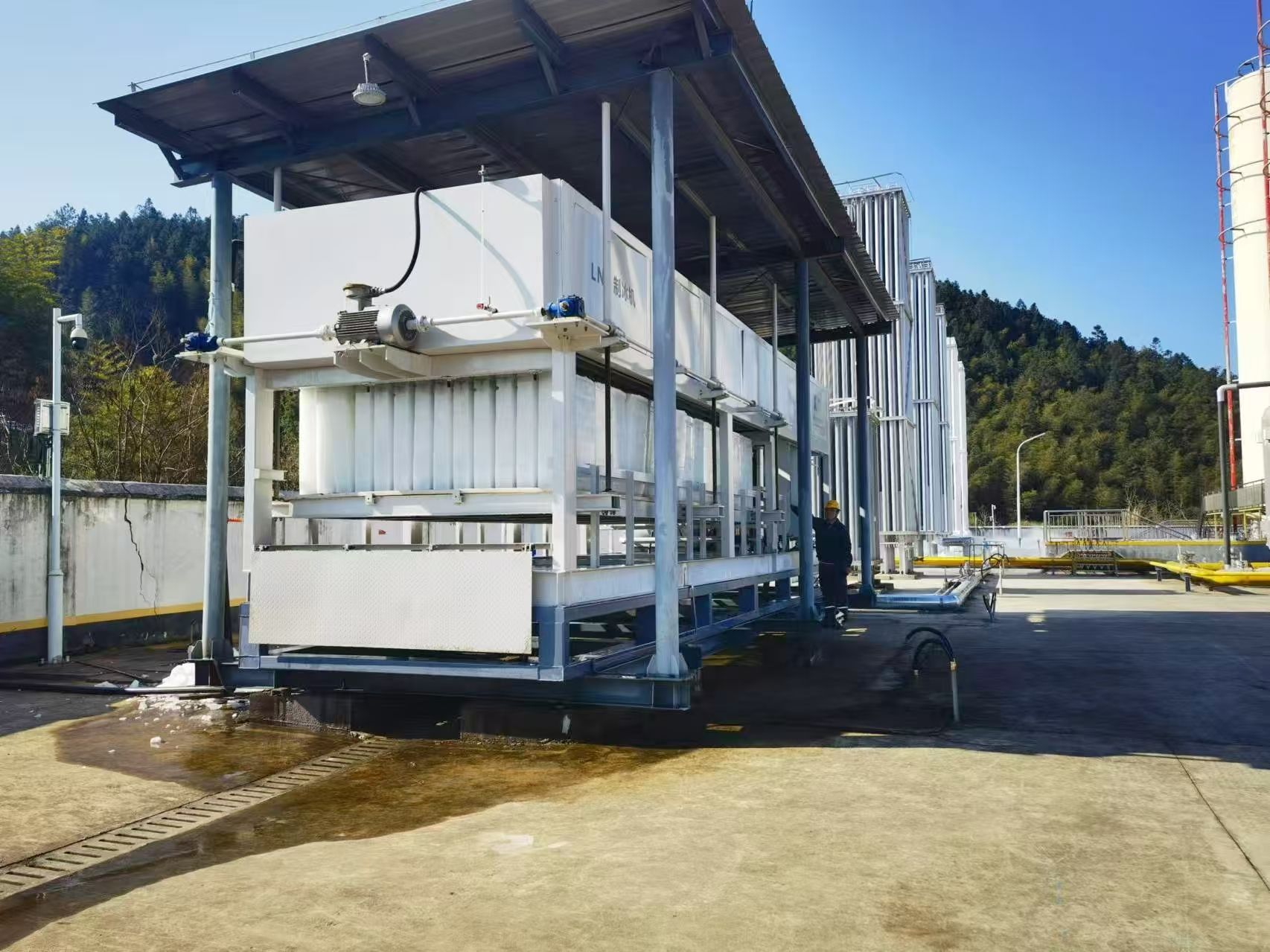 近日我司生產(chǎn)的LNG冷能制冰機(jī)順利交付,在龍巖華潤燃?xì)馍虾计戒丩NG冷能利用項(xiàng)目中運(yùn)行通暢,日出冰量30T,極大地為企業(yè)節(jié)約能源,實(shí)現(xiàn)節(jié)能減排,綠色生產(chǎn),為企業(yè)增產(chǎn)增效。